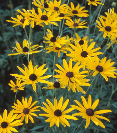 - Black-eyed Susan (Rudbeckia fulgida) A classic summer flower, Black-eyed Susan is beloved for its golden petals and pollinator-friendly blooms. Care tips: Adaptable to most soils. Deadhead to extend bloom; cut back in fall after frost.